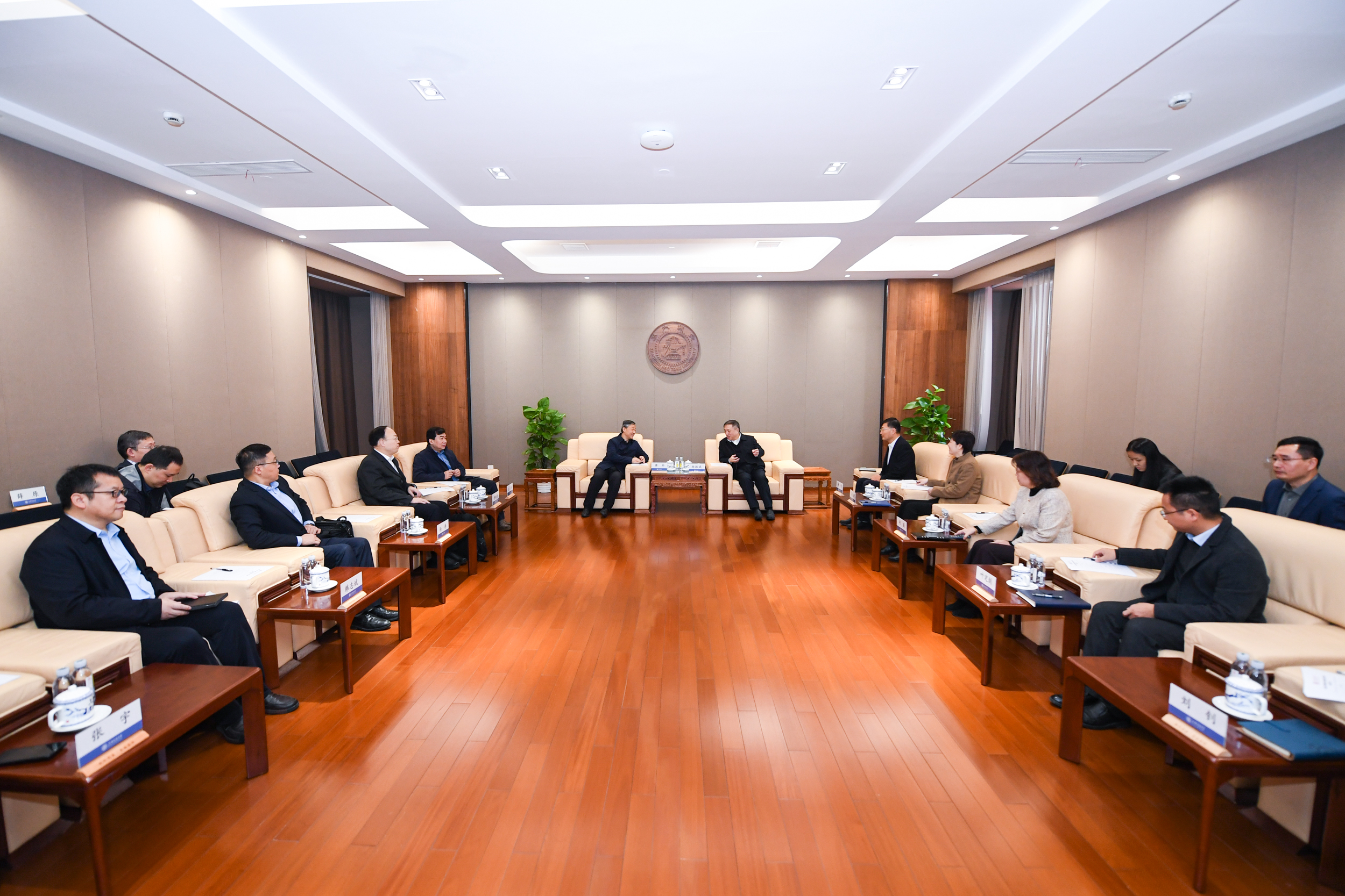 在上海交通大学闵行校区,该校党委书记杨振斌会见了蒋林一行。杨振斌介绍了上海交通大学的办学历史、“十五五”期间发展思路、战略目标、重大举措等情况。蒋林表示,上海交通大学作为一所“综合性、创新型、国际化”的国内一流、国际知名大学,有着悠久的办学历史和深厚的办学底蕴,他希望通过本次调研学习借鉴上海交大的先进经验,并期待未来两校进一步加强交流、深化合作。双方就“十五五”期间学科建设、人才培养、科学研究、成果转化等方面进行了深入交流。