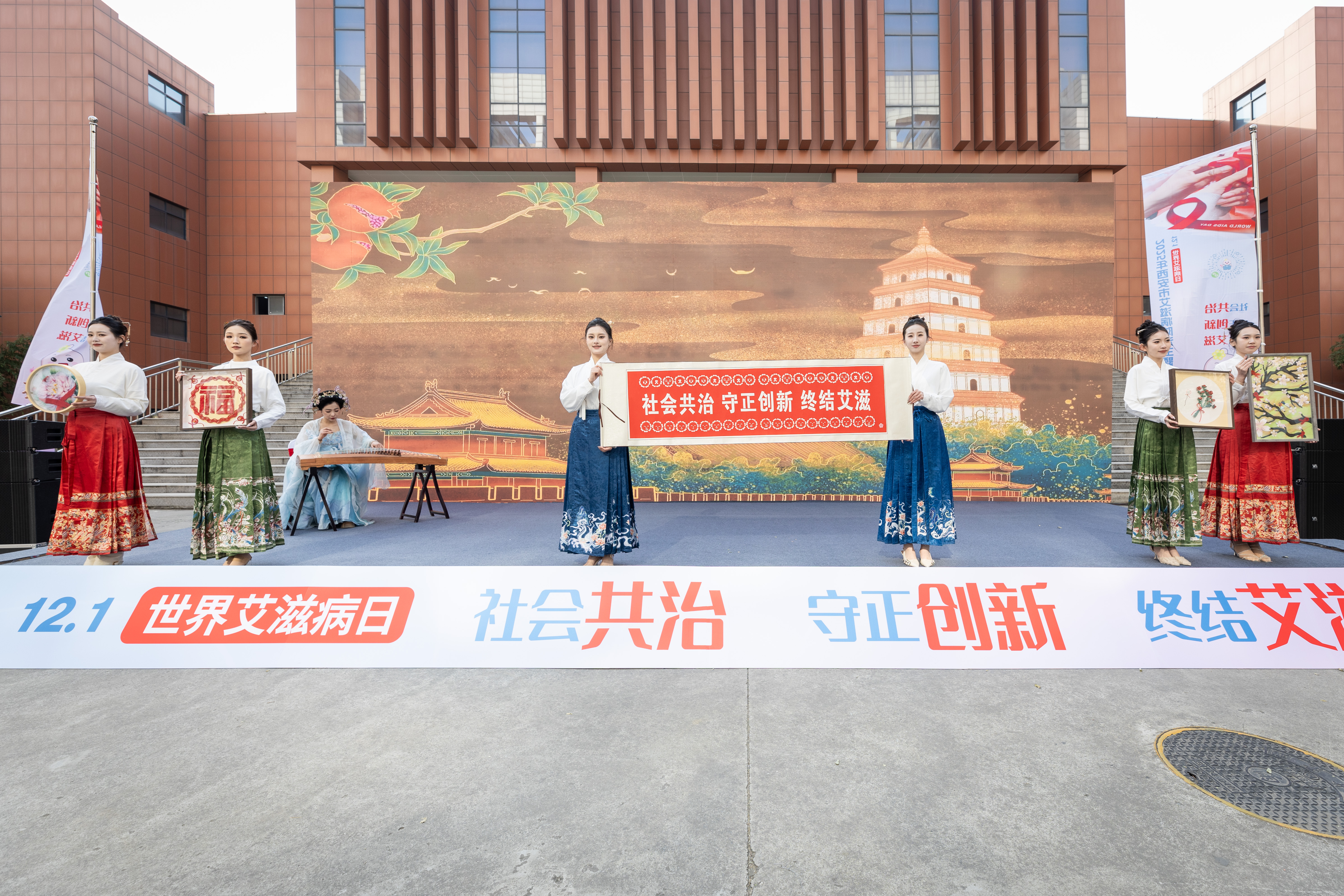 活动以多元创新形式传递防艾理念,构建沉浸式宣传场景。视频回顾了“2025年西安市防艾讲师大赛”优秀作品,生动定格了师生积极投身防艾宣传的精彩瞬间;“防艾非遗大秀”将传统技艺与防艾主题深度融合,以匠心诠释关怀守护寓意,以作品传递“防艾不防爱”的公益理念;“爱无界·防艾行”互动打卡定向赛,将防艾知识融入趣味互动。