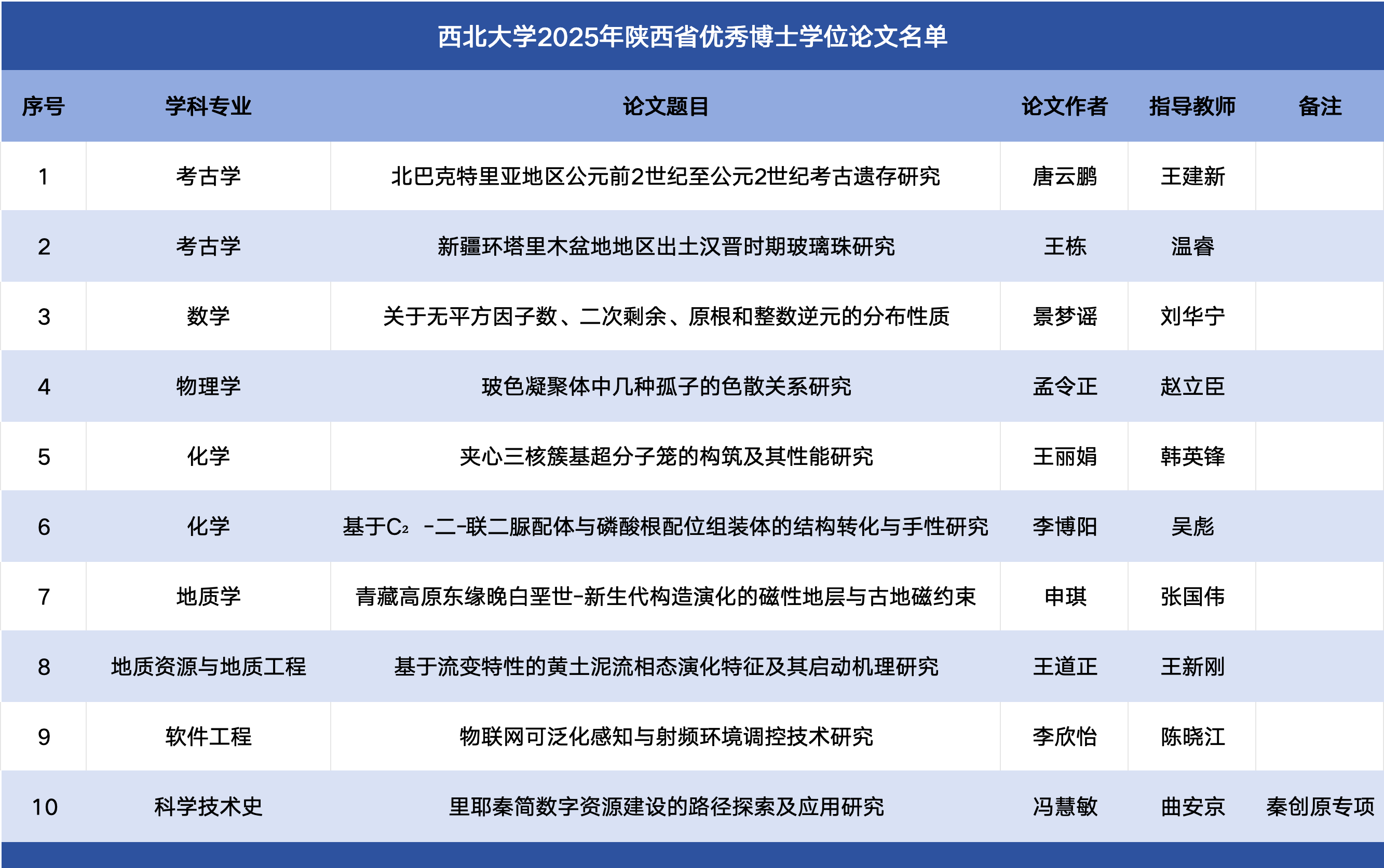 近日,2025年陕西省优秀博士学位论文评选结果揭晓,我校学共有10篇博士学位论文入选,其中荣获“秦创原专项”1篇。本年度入选数量创历年新高,位列省属高校第一、并列全省高校第四。