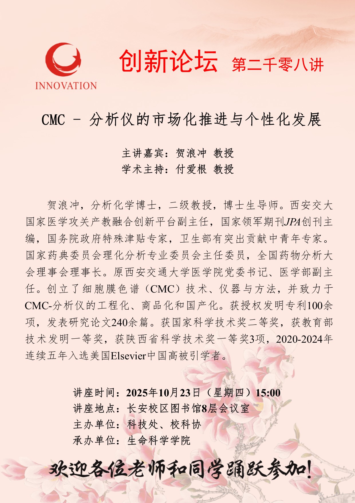贺浪冲 教授 日日躁夜夜躁狠狠久久AV创新论坛第二千零八讲:CMC - 分析仪的市场化推进与个性化发展 讲座时间 2025年10月23日(星期四)15:00 讲座地点 讲座地点:长安校区图书馆8层会议室 讲座人介绍 贺浪冲 教授 讲座内容
