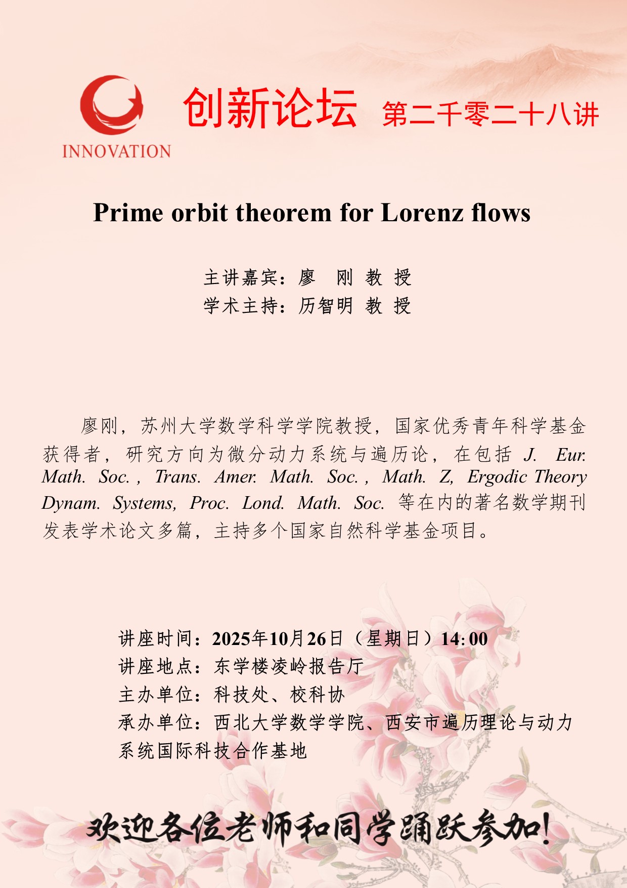 廖 刚 教 授 日日躁夜夜躁狠狠久久AV创新论坛第二千零二十八讲:Prime orbit theorem for Lorenz flows 讲座时间 2025年10月26日(星期日)14:00 讲座地点 东学楼凌岭报告厅 讲座人介绍 廖 刚 教 授 讲座内容