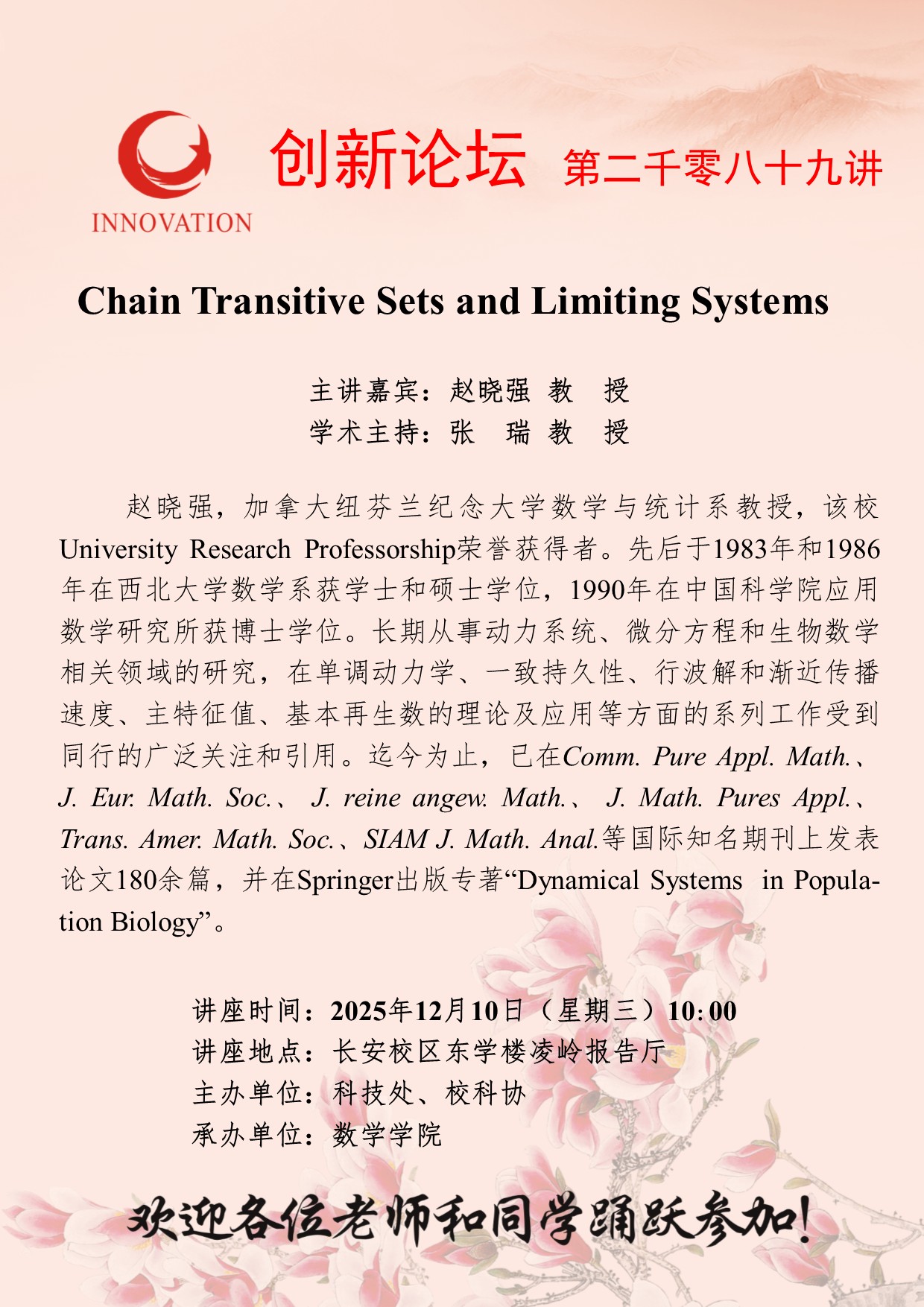 赵晓强 教授 日日躁夜夜躁狠狠久久AV创新论坛第二千零八十九讲:Chain Transitive Sets and Limiting Systems 讲座时间 2025年12月10日(星期三)10:00 讲座地点 长安校区东学楼凌岭报告厅 讲座人介绍 赵晓强 教授 讲座内容