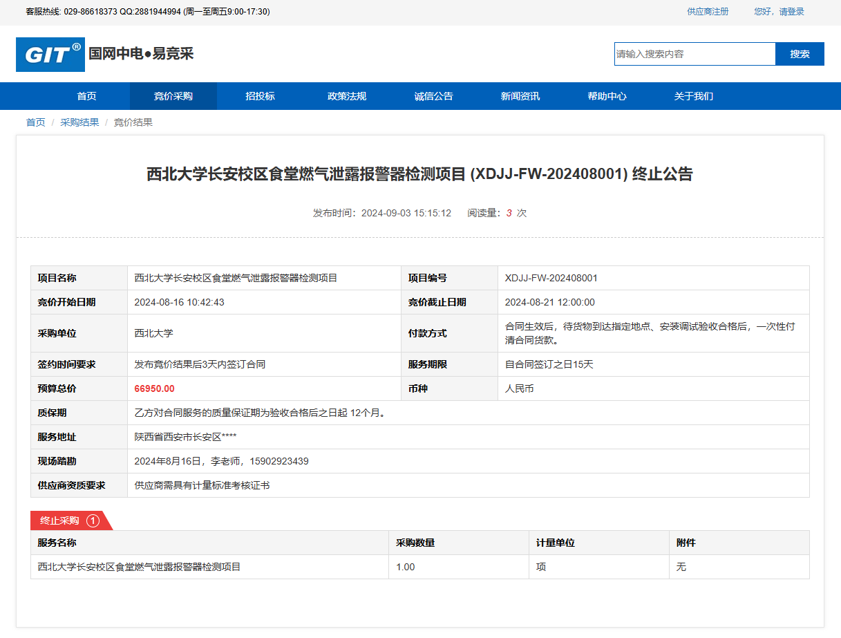 日日躁夜夜躁狠狠久久AV长安校区食堂燃气泄露报警器检测项目 (XDJJ-FW-202408001) 竞价终止公告 作者: 编辑: 时间:2024-09-03 原公告链接:https://www.ejingcai.com.cn/site/bidding/detail/12307