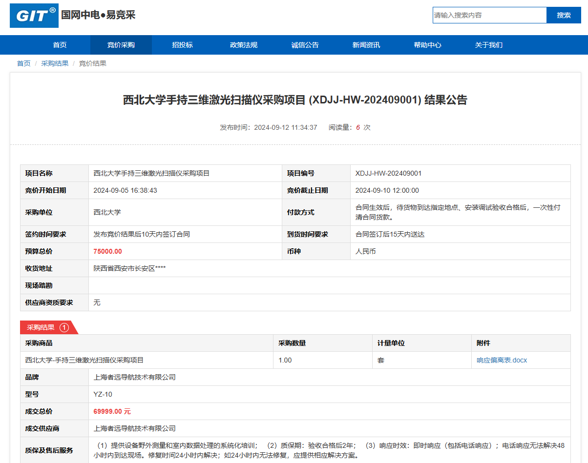 日日躁夜夜躁狠狠久久AV手持三维激光扫描仪采购项目 (XDJJ-HW-202409001)竞价结果公告 作者: 编辑: 时间:2024-09-12 原公告链接:https://www.ejingcai.com.cn/site/bidding/detail/12516
