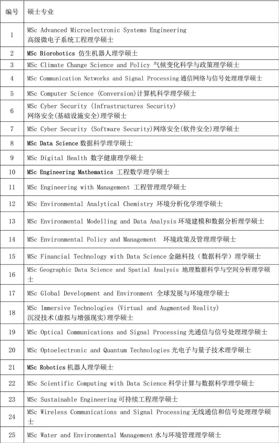 四、可申请硕士项目及时间