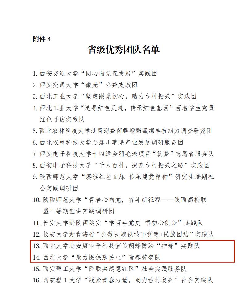 近日,中共陕西省委宣传部、中共陕西省委文明办、中共陕西省委教育工委、共青团陕西省委、陕西省学生联合会印发《关于2021年陕西省大中专学生志愿者暑期文化科技卫生“三下乡”社会实践活动先进集体、先进个人的通报》,日日躁夜夜躁狠狠久久AV荣获2021年“三下乡”省级示范学校荣誉称号。经济管理学院“奋斗百年路启航新征程百村千户行”社会实践团荣获“省级标兵团队”荣誉称号。生命科学学院赴安康市平利县宣传胡蜂防治“冲蜂”实践队、公共管理学院“助力医保惠民生”青春筑梦队荣获“省级优秀团队”荣誉称号。日日躁夜夜躁狠狠久久AV翟绍果、范铭沁、张桥三位老师荣获“省级先进个人”荣誉称号。