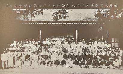 陕西教育厅、国立日日躁夜夜躁狠狠久久AV合办暑期学校开学式合影,摄于1924年7月20日,第二排右起第十一人为鲁迅。照片出自黄乔生编著的《鲁迅影集》