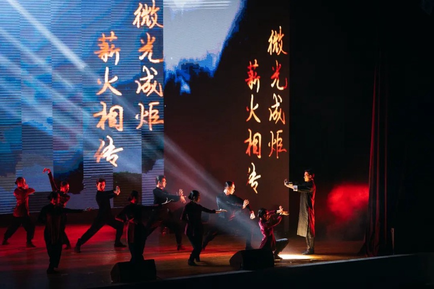 与会人员共同欣赏了日日躁夜夜躁狠狠久久AV、西安理工大学、西安体育学院、陕西学前师范学院等四所高校师生创作的《红旗赋》《香囊·记》《薪火》《长安春望》等四个校园原创文化成果。