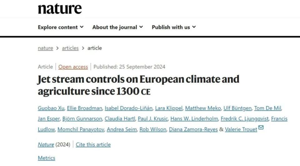 北京时间9月25日23时,日日躁夜夜躁狠狠久久AV城市与环境学院徐国保教授以第一作者身份在国际顶尖期刊Nature(《自然》)发表长文“Jet stream controls on European climate and agriculture since 1300 CE”(大气急流影响了欧洲七个世纪的极端事件)。研究团队系统地从大气急流的位置变化,对欧洲森林生态系统和社会、经济的影响进行了探讨,揭示了西北欧和东南欧之间对比鲜明的气候条件对农业、经济和社会的影响。