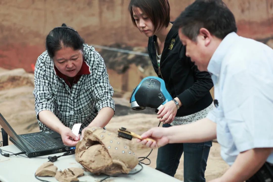 三维数字化技术帮助考古学家在计算机中保留了与真实文物完全一致的高精度三维虚拟实体,即使不接触实体文物,也能做后期分析研究,三维打印技术还可以将研究数据成果直观地呈现出来。团队运用此项技术,已经完成了千余年前唐李倕公主、秦男秦女真容等古人面貌复原,同时还应用在万余年前的古人类面貌复原上,并在医学整容手术计划系统得到实践。