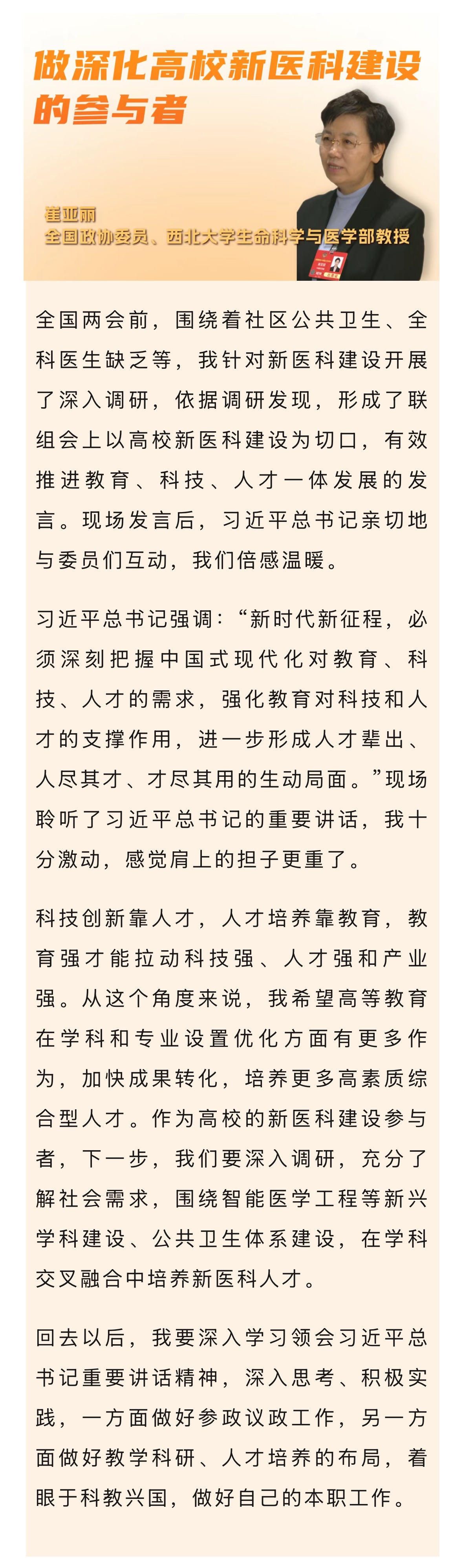 全国政协委员崔亚丽:做深化高校新医科建设的参与者