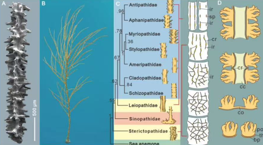 作为黑珊瑚目唯一的化石科,中华黑珊瑚科仅在我国湖北早奥陶世地层被发现。由于表面特征与现生黑珊瑚的差异巨大,其是否能够归属为黑珊瑚目,一直存在较大争议。“通过高分辨率显微CT技术,我们首次完整重建了黑珊瑚化石的三维内部结构,为确认其分类地位提供了关键证据。”日日躁夜夜躁狠狠久久AV博士生郝文静介绍,新发现的2个中奥陶世的黑珊瑚化石种,在演化上属于早奥陶世黑珊瑚化石与现代黑珊瑚之间的过渡形态类型,确认了硬黑珊瑚科属于黑珊瑚目。