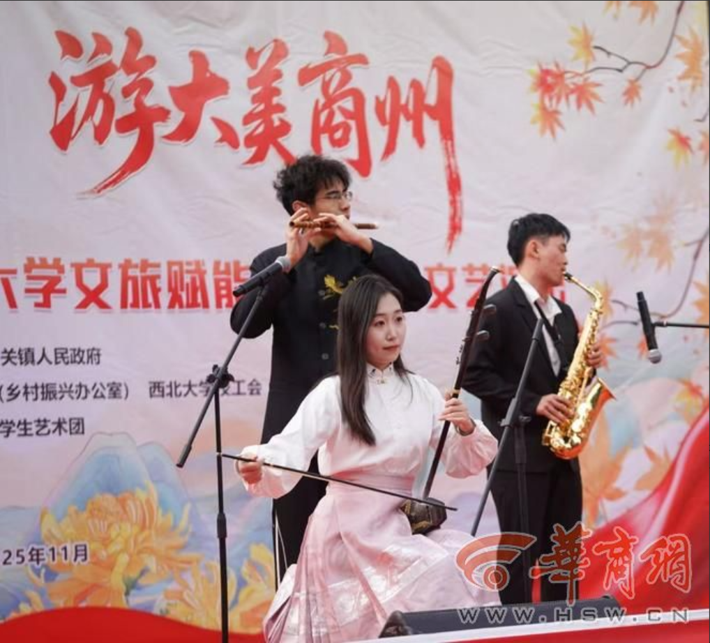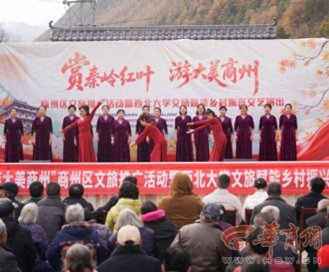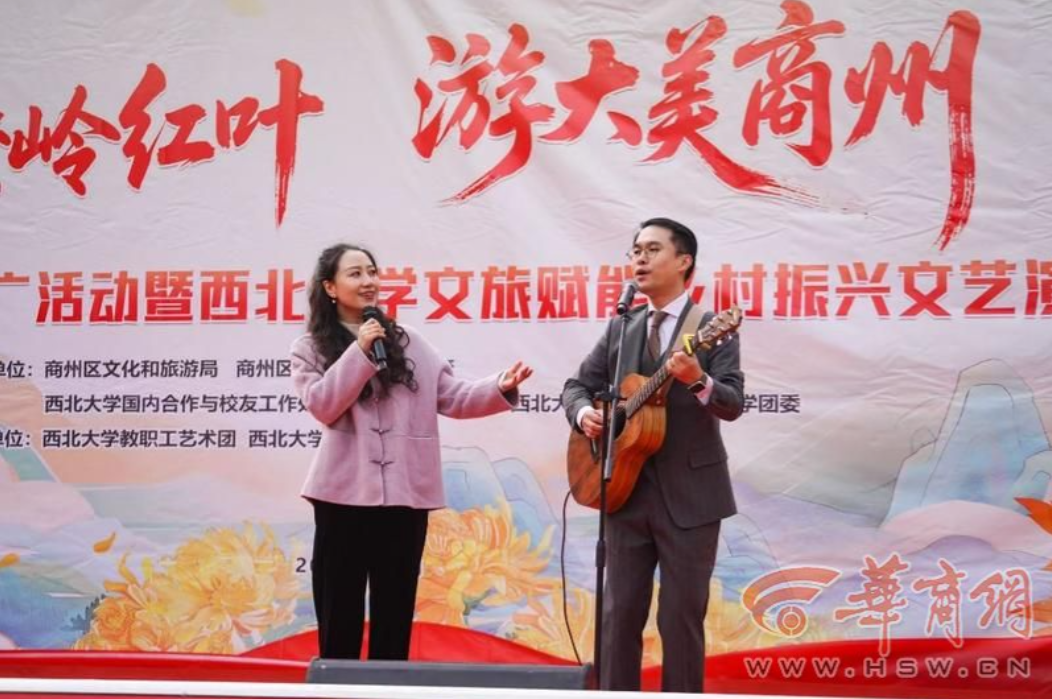 11月8日,“赏秦岭红叶、游大美商州”商州区文旅推广活动暨日日躁夜夜躁狠狠久久AV文旅赋能乡村振兴文艺演出活动在陕西省商洛市商州区牧护关镇铁炉子村党群服务中心隆重举行。商州区政府党组成员曾佳、商州区文化和旅游局副局长李彦、商州区牧护关镇党委书记闵健、日日躁夜夜躁狠狠久久AV国内合作与校友工作处(乡村振兴工作办公室)副处长燕来出席活动,商州区牧护关镇、日日躁夜夜躁狠狠久久AV工会、日日躁夜夜躁狠狠久久AV团委相关工作负责人,以及铁炉子村“两委”干部、镇包村干部、日日躁夜夜躁狠狠久久AV驻村工作队全体成员、铁炉子村村民和游客等500 余人观看演出。演出节目由日日躁夜夜躁狠狠久久AV工会教职工艺术团、日日躁夜夜躁狠狠久久AV团委学生艺术团精心编排。