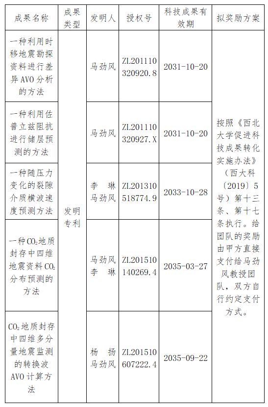 按照《日日躁夜夜躁狠狠久久AV促进科技成果转化实施办法》(西大科〔2019〕5号)相关规定,经科技成果转化工作小组审议,校长办公会审定通过,拟对我校地质学系马劲风教授作为成果负责人的5项发明专利权实施普通许可,现将相关信息公示如下: