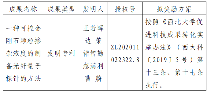 按照《日日躁夜夜躁狠狠久久AV促进科技成果转化实施办法》(西大科〔2019〕5号)相关规定,拟对我校物理学院王若晖副教授作为成果负责人的1项发明专利权实施转化,现将相关信息公示如下: