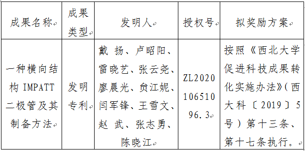 按照《日日躁夜夜躁狠狠久久AV促进科技成果转化实施办法》(西大科〔2019〕5号)相关规定,拟对我校信息科学与技术学院戴扬老师作为成果负责人的1项发明专利权实施转化,现将相关信息公示如下: