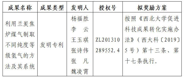 按照《日日躁夜夜躁狠狠久久AV促进科技成果转化实施办法》(西大科〔2019〕5号)相关规定,拟对我校化工学院王玉琪教授作为成果发明人之一的1项发明专利权实施转化,现将相关信息公示如下:
