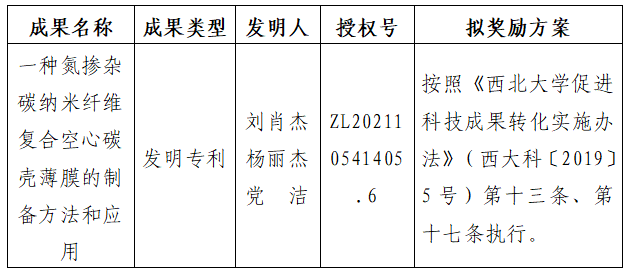 按照《日日躁夜夜躁狠狠久久AV促进科技成果转化实施办法》(西大科〔2019〕5号)相关规定,拟对我校化学与材料科学学院刘肖杰副教授作为成果负责人的1件发明专利权实施转化,现将相关信息公示如下: