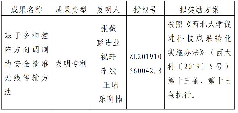 按照《日日躁夜夜躁狠狠久久AV促进科技成果转化实施办法》(西大科〔2019〕5号)相关规定,拟对我校信息科学与技术学院张薇老师作为成果负责人的1项发明专利权实施转化,现将相关信息公示如下: