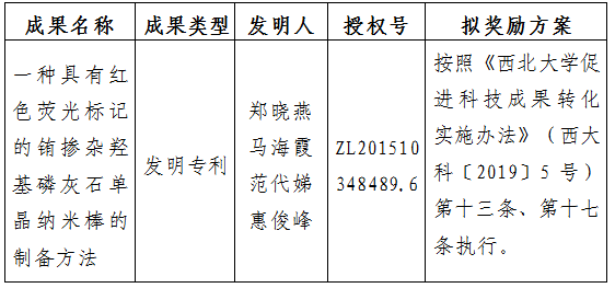 按照《日日躁夜夜躁狠狠久久AV促进科技成果转化实施办法》(西大科〔2019〕5号)相关规定,拟对我校化工学院郑晓燕副教授作为成果负责人的1项发明专利权实施转化,现将相关信息公示如下: