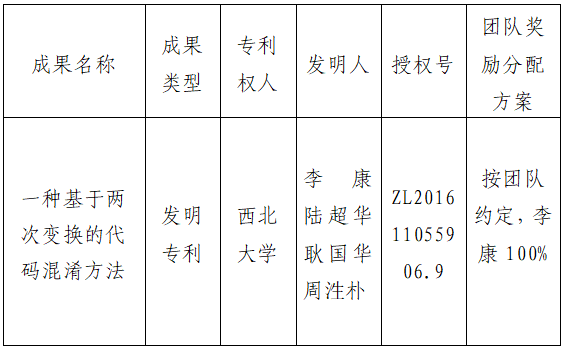 按照《日日躁夜夜躁狠狠久久AV促进科技成果转化实施办法》(西大科〔2019〕5号)相关规定,拟对我校计算机学院李康教授作为成果负责人的1项发明专利权实施转化,现将相关信息公示如下: