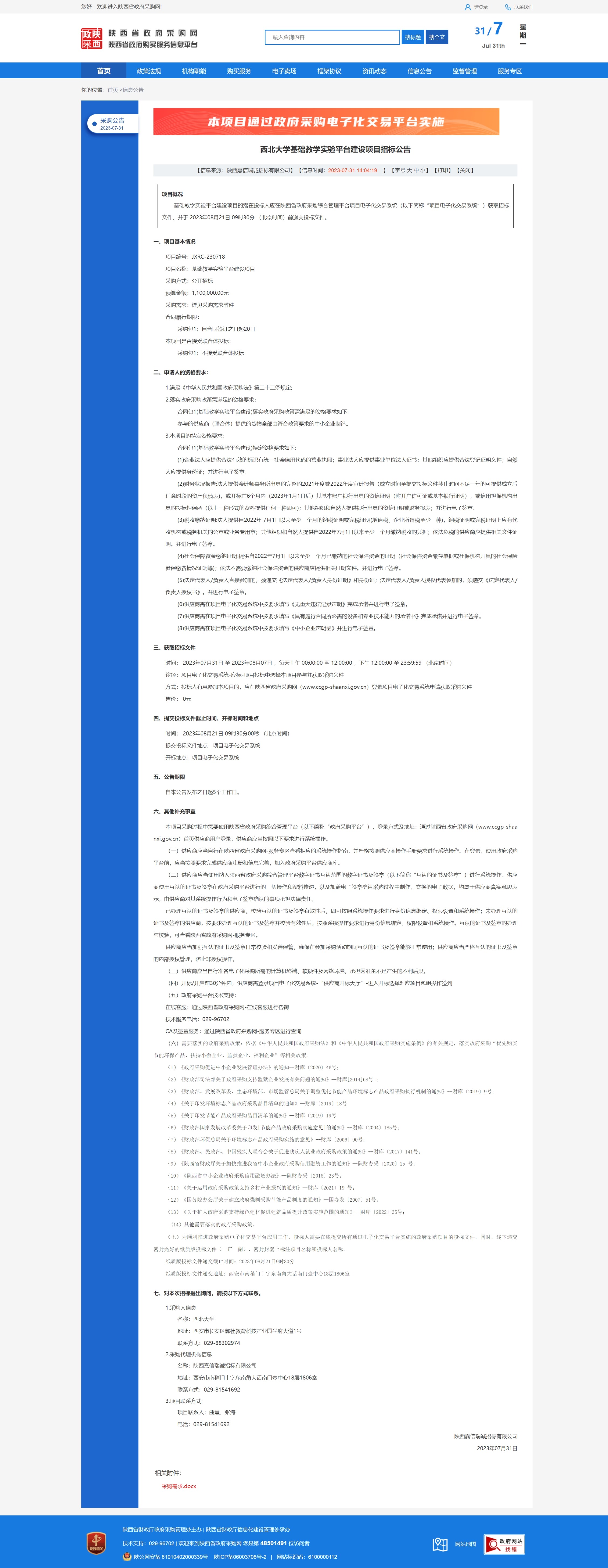 日日躁夜夜躁狠狠久久AV基础教学实验平台建设项目招标公告 作者: 编辑:采购与招标办公室 时间:2023-07-31 原公告链接:http://www.ccgp-shaanxi.gov.cn/freecms/site/shaanxi/ggxx/info/2023/8a69c0be899a71f00189a9e854200a61.html?noticeType=001011¬iceId=3bdd4942-2f69-11ee-9a8e-08c0eb20c666