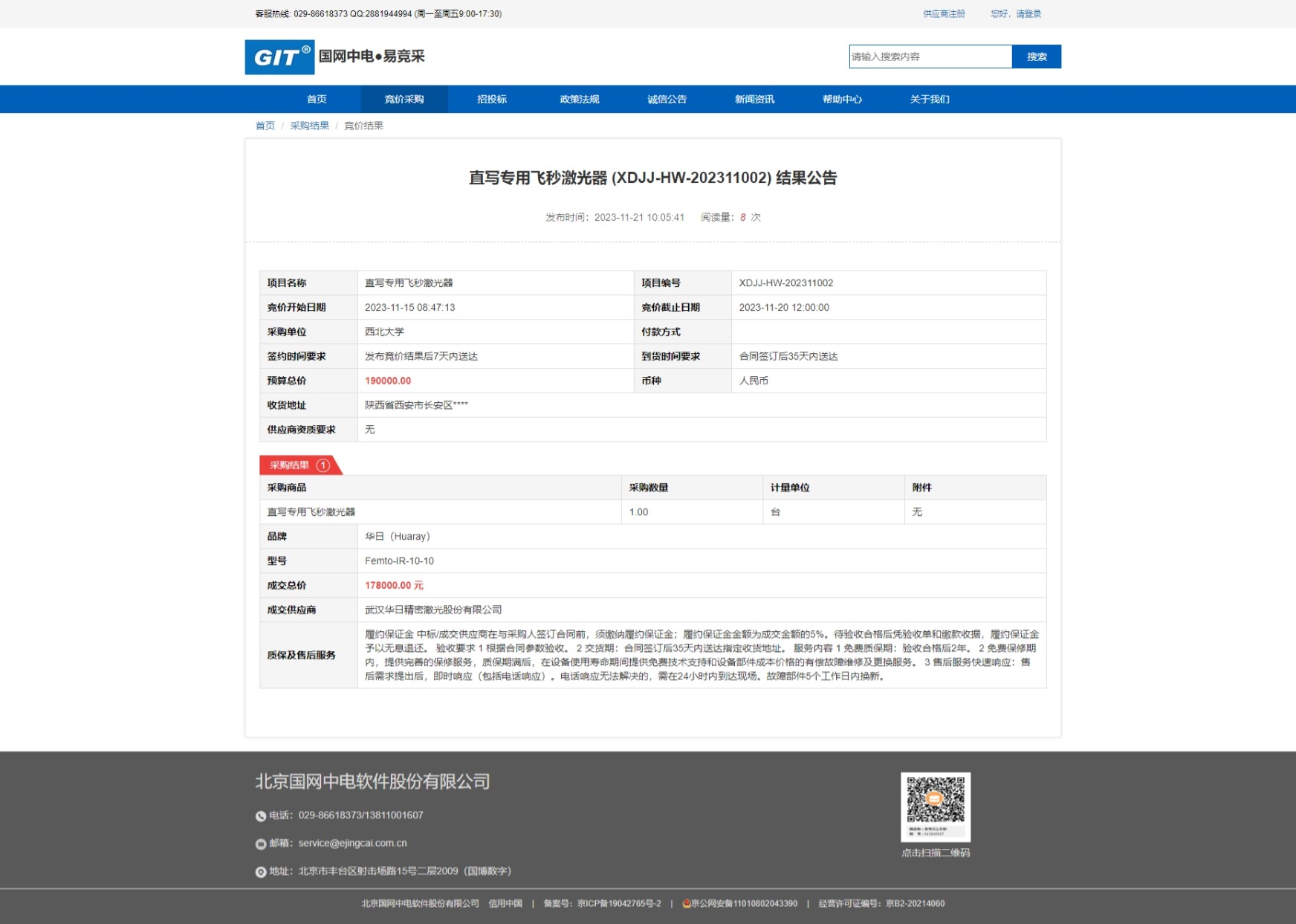 日日躁夜夜躁狠狠久久AV直写专用飞秒激光器采购项目结果公告 作者: 编辑:采购与招标办公室 时间:2023-11-22 原公告链接:https://www.ejingcai.com.cn/site/bidding/detail/6959
