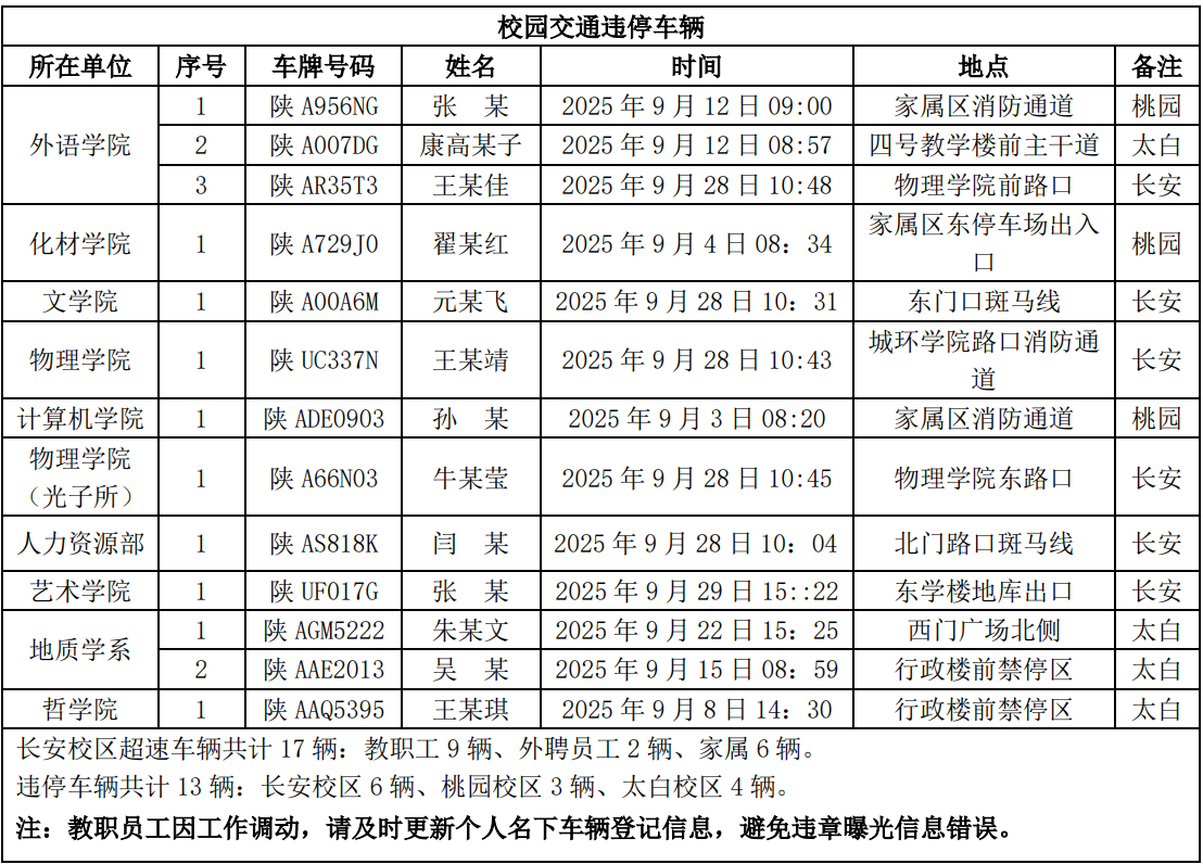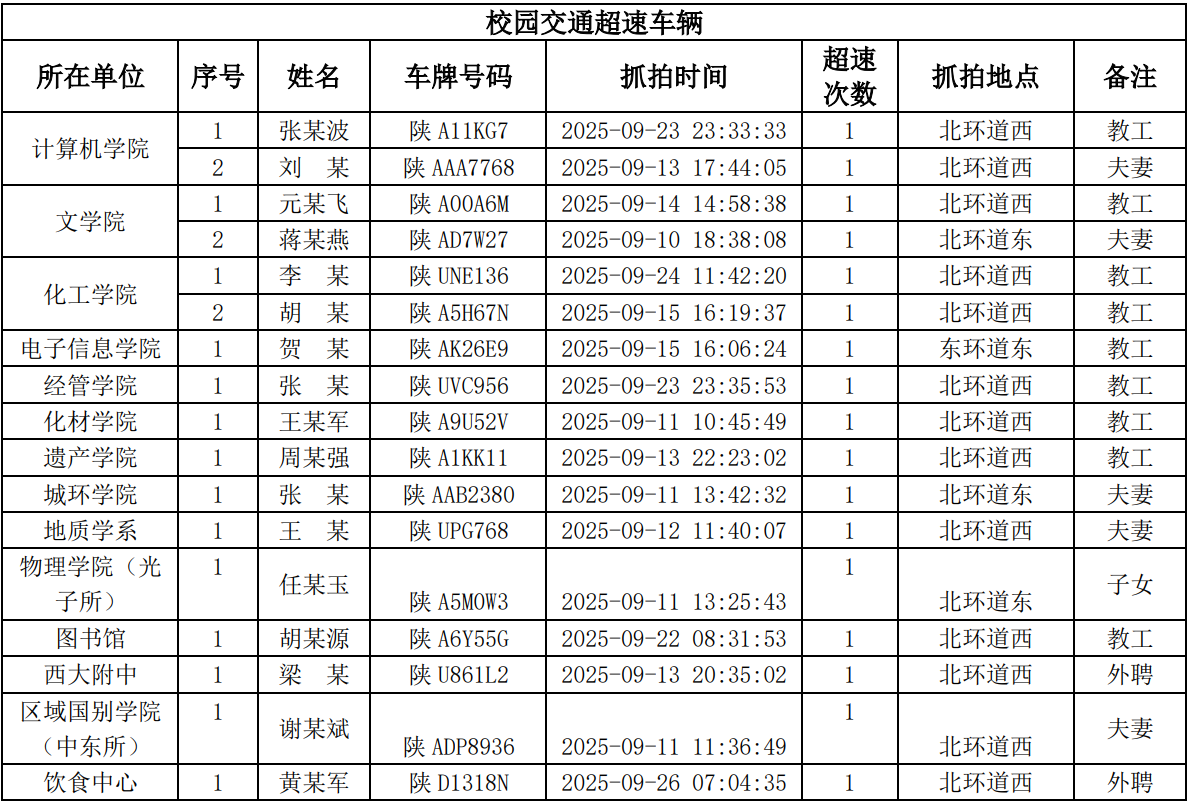 为进一步加强校园交通管理,保障校园交通安全有序,维护学校正常的教学、科研和生活秩序,切实保护师生员工的人身财产安全,根据《日日躁夜夜躁狠狠久久AV校园交通安全管理规定》的相关要求,现将2025年9月校园交通违章车辆予以曝光,具体要求与违章信息如下: