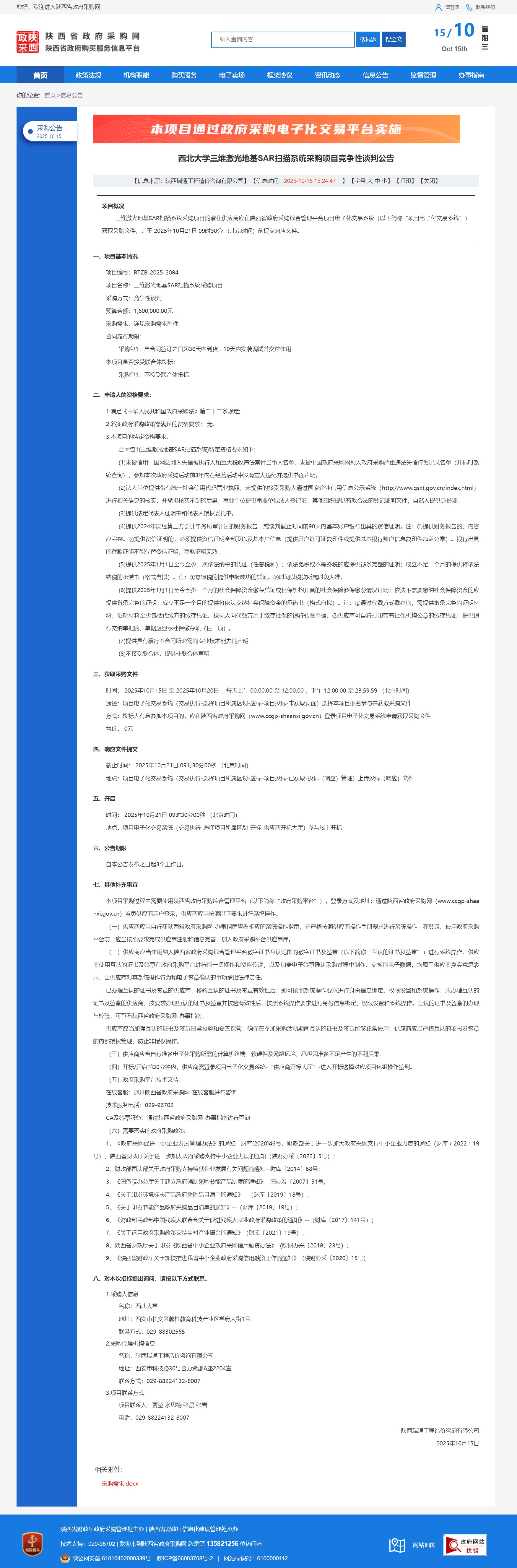 日日躁夜夜躁狠狠久久AV三维激光地基SAR扫描系统采购项目竞争性谈判公告