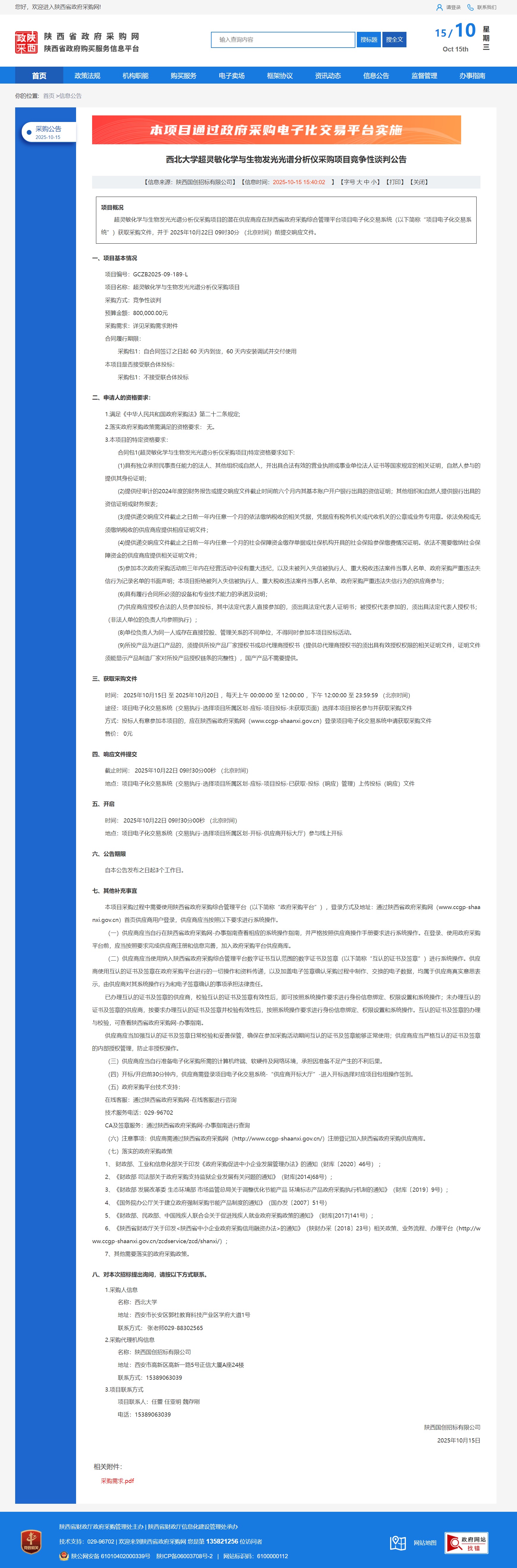 日日躁夜夜躁狠狠久久AV超灵敏化学与生物发光光谱分析仪采购项目竞争性谈判公告