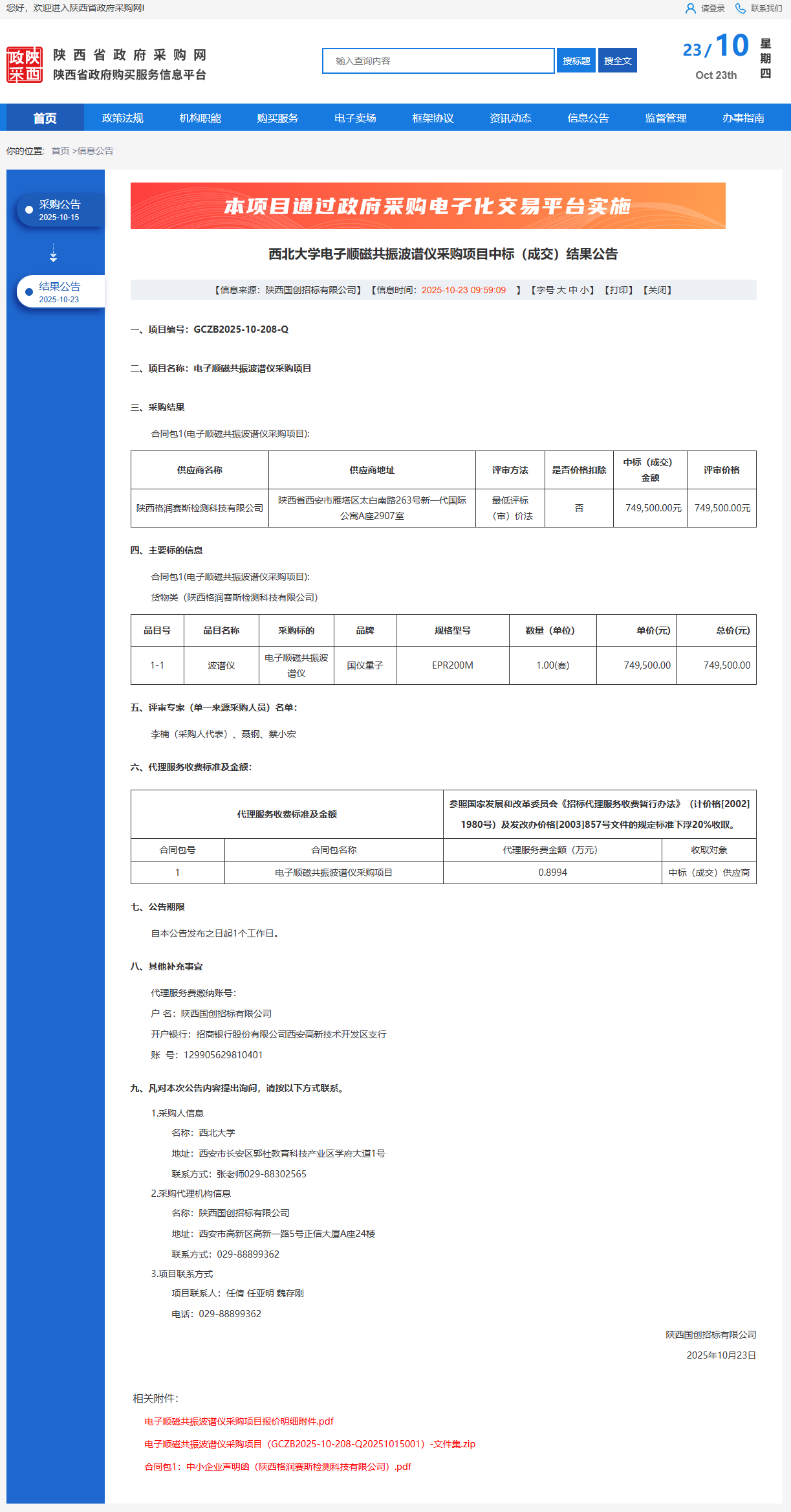 日日躁夜夜躁狠狠久久AV电子顺磁共振波谱仪采购项目中标(成交)结果公告