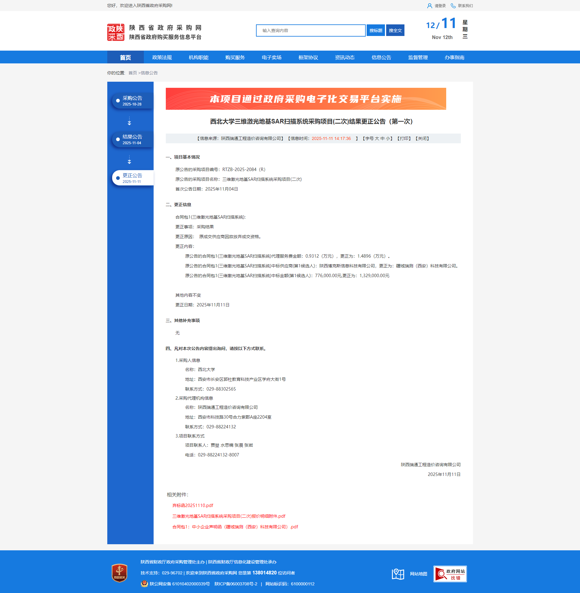 日日躁夜夜躁狠狠久久AV三维激光地基SAR扫描系统采购项目(二次)结果更正公告(第一次)
