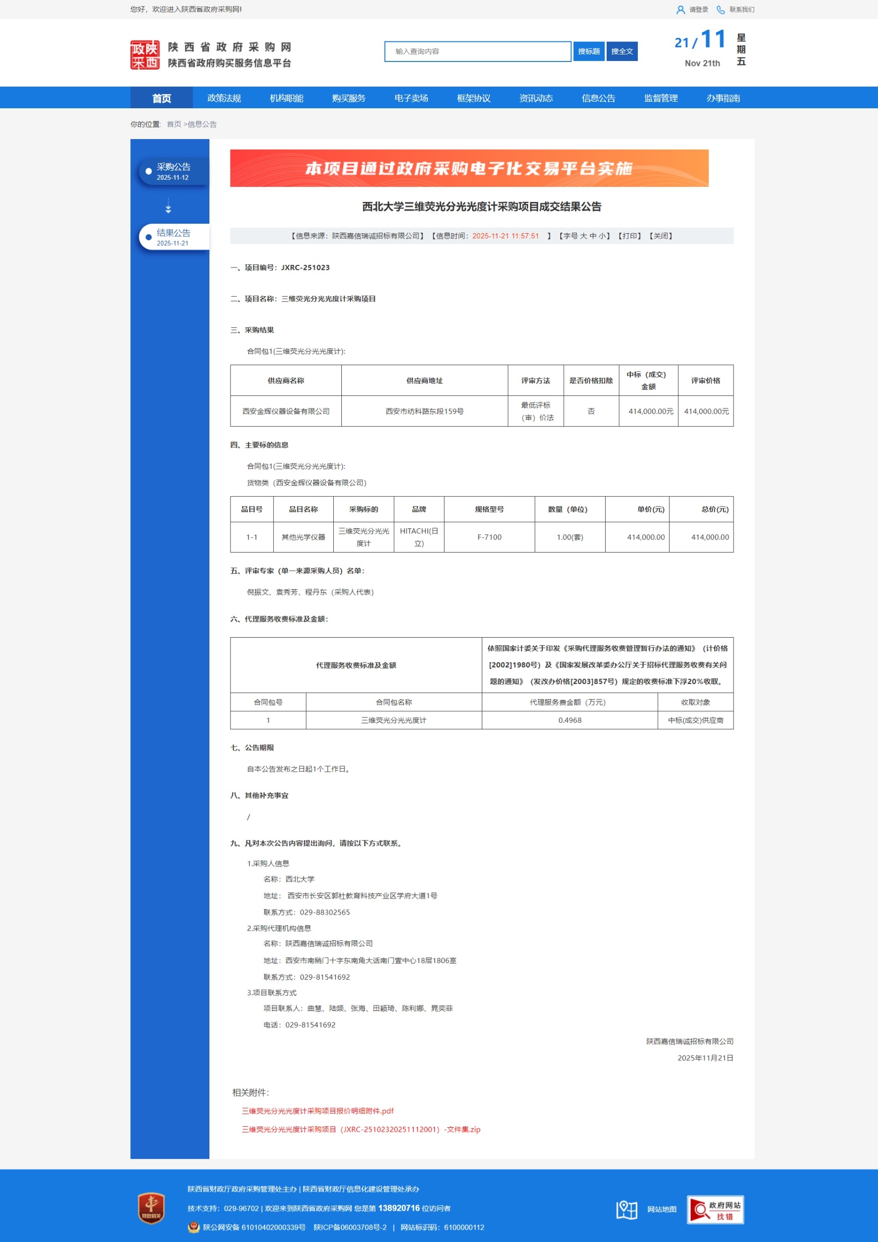 日日躁夜夜躁狠狠久久AV三维荧光分光光度计采购项目成交结果公告 作者:国有资产管理处 编辑:国有资产管理处 时间:2025-11-21 原公告链接:https://www.ccgp-shaanxi.gov.cn/freecms/site/shaanxi/ggxx/info/2025/8a69c0019a9a55ca019aa4229c8b6f4d.html?noticeType=001023¬iceId=7c2bb784-c690-11f0-8063-08c0eb20c666