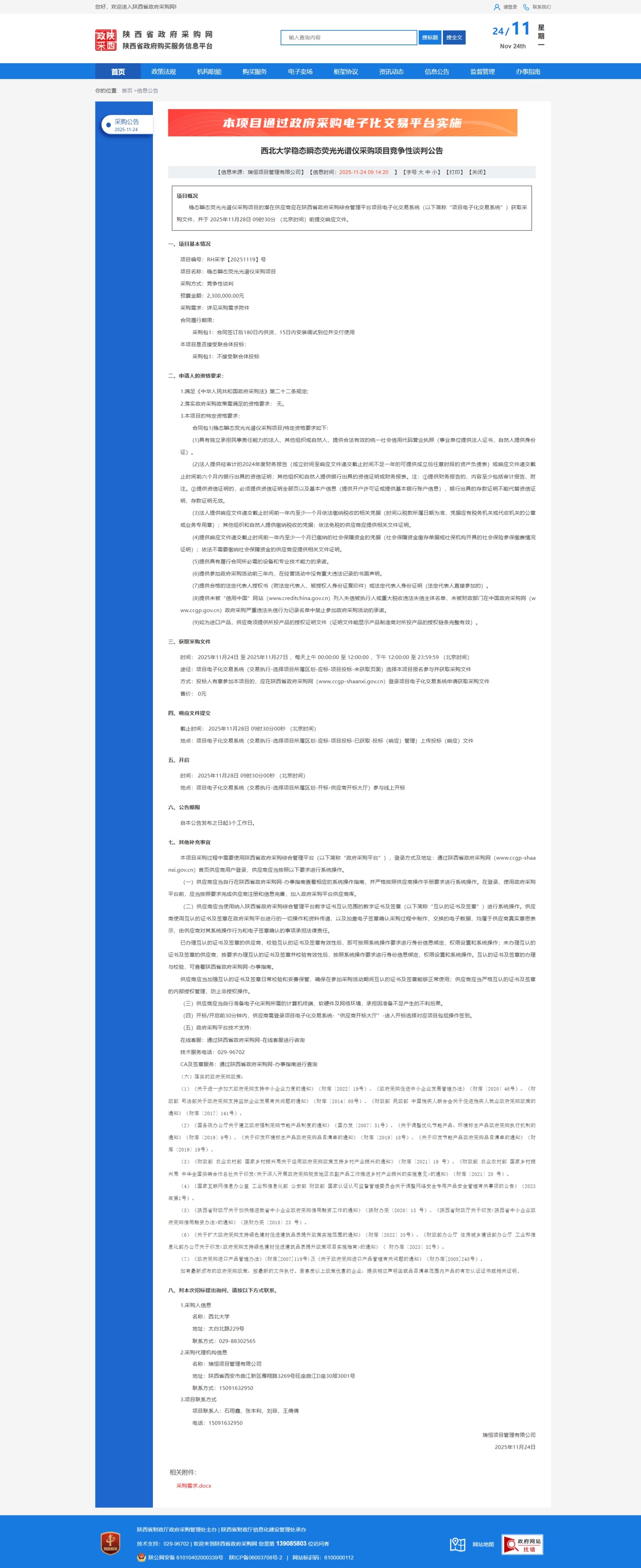日日躁夜夜躁狠狠久久AV稳态瞬态荧光光谱仪采购项目竞争性谈判公告 作者: 编辑:国有资产管理处 时间:2025-11-24 原公告链接:https://www.ccgp-shaanxi.gov.cn/freecms/site/shaanxi/ggxx/info/2025/8a69c5539a636e42019ab358867551cb.html?noticeType=001013¬iceId=24a6bfdb-c8d5-11f0-8063-08c0eb20c666