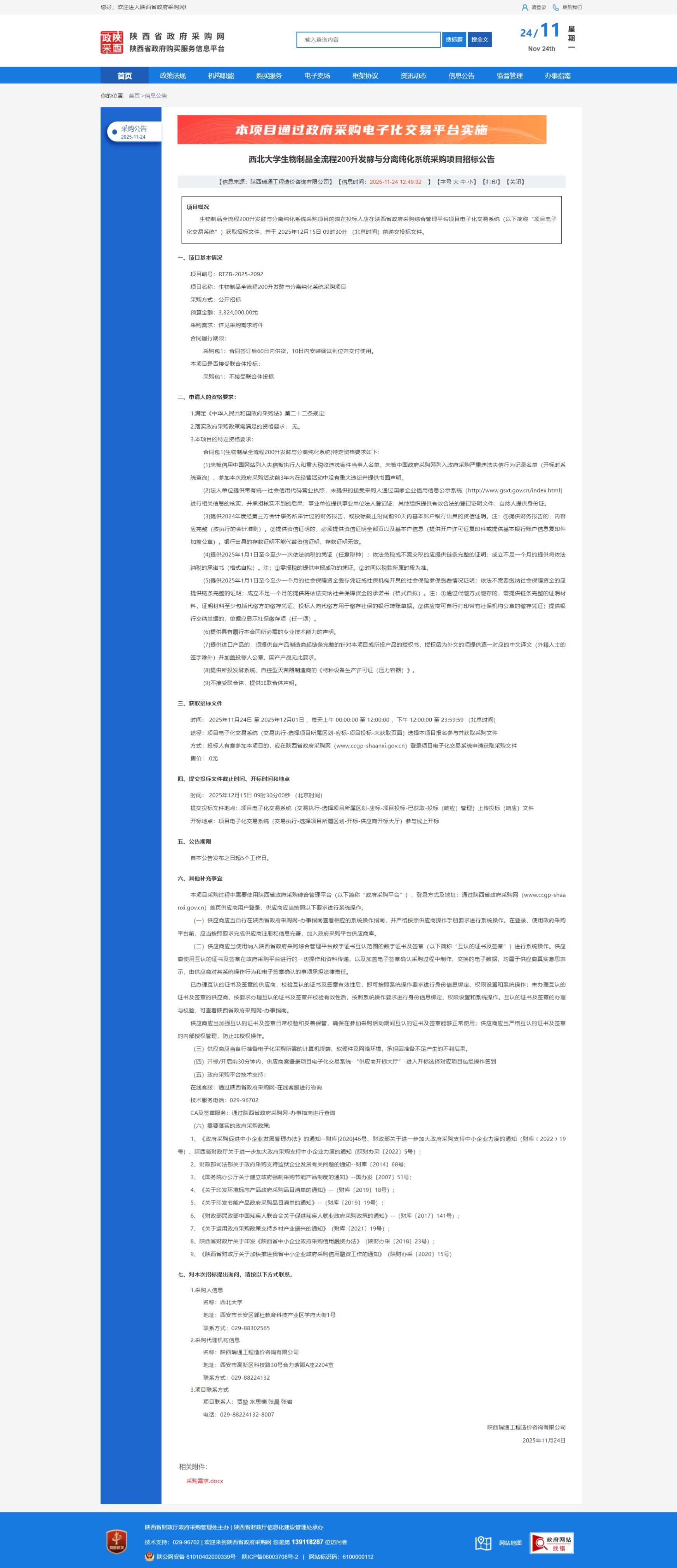 日日躁夜夜躁狠狠久久AV生物制品全流程200升发酵与分离纯化系统采购项目招标公告 作者: 编辑:国有资产管理处 时间:2025-11-24 原公告链接:https://www.ccgp-shaanxi.gov.cn/freecms/site/shaanxi/ggxx/info/2025/8a69c6d09a636c6c019ab41e3479334d.html?noticeType=001011¬iceId=34afdb62-c8f3-11f0-8063-08c0eb20c666