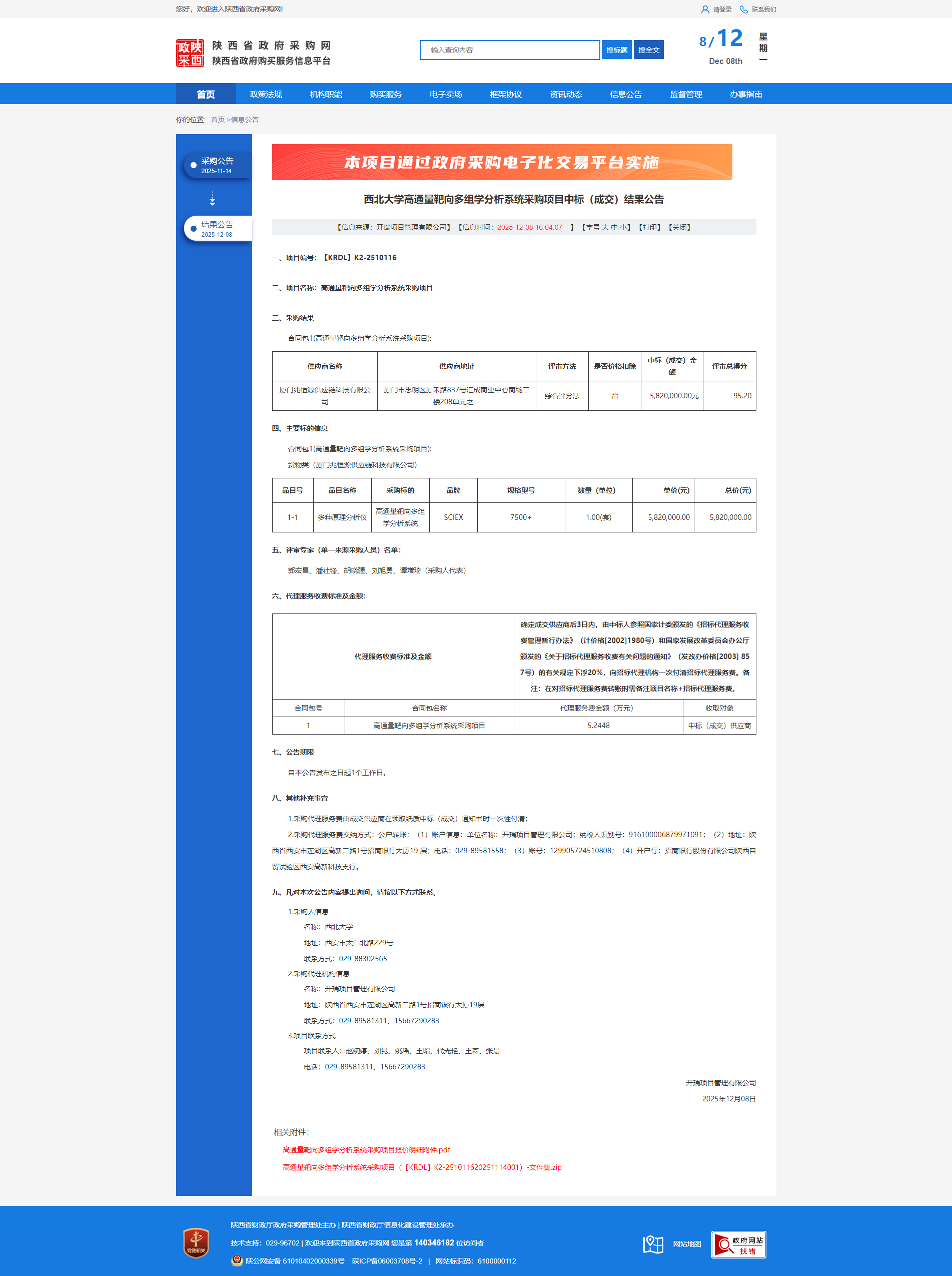 日日躁夜夜躁狠狠久久AV高通量靶向多组学分析系统采购项目中标(成交)结果公告