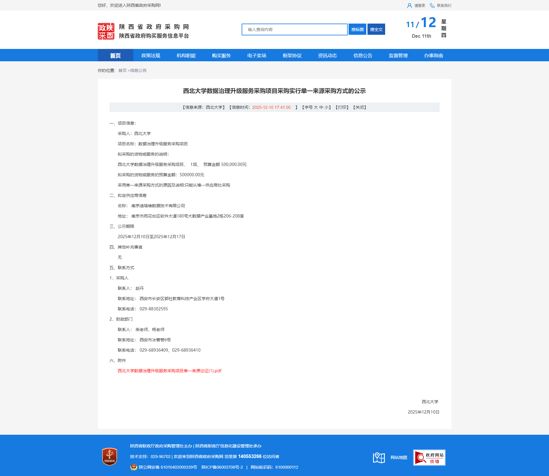 日日躁夜夜躁狠狠久久AV数据治理升级服务采购项目采购实行单一来源采购方式的公示