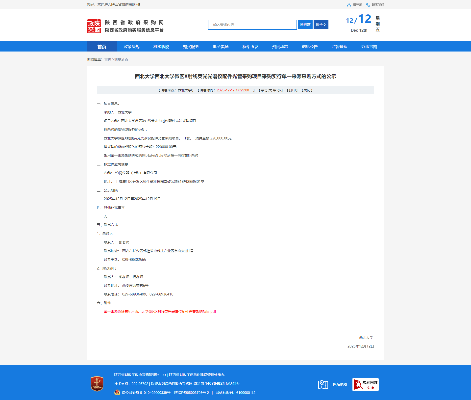 日日躁夜夜躁狠狠久久AV微区X射线荧光光谱仪配件光管采购项目采购实行单一来源采购方式的公示